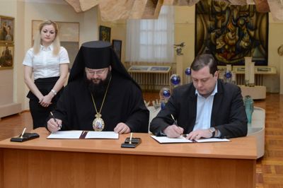 Сегодня же в Гагарине состоялось подписание соглашения о намерениях между региональной администрацией и Смоленской епархией о передаче архиерейского подворья Благовещенского собора.