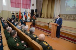 Губернатор Алексей Островский принял участие в торжественных мероприятиях, посвященных празднованию 99-й годовщины со дня образования войсковой противовоздушной обороны, которые состоялись в Военной академии ВПВО ВС РФ им. Маршала Советского союза А.М. Василевского.