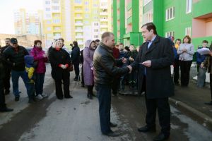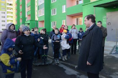 Выступая перед новоселами, глава региона также обратил внимание на другие положительные изменения в микрорайоне: «Я очень рад и благодарен депутатам городского совета, которые прислушались к моим рекомендациям, к тем поручениям, которые я давал городской администрации, и своим решением сохранили зеленую зону в вашем микрорайоне. Я очень рад, что в ближайшее время на Королевке откроет свои двери дошкольное учреждение – новый детский садик».