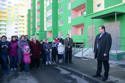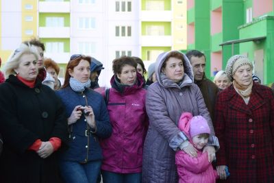 В микрорайоне Королёвка города Смоленска состоялось торжественное вручение ключей от квартир, приобретенных муниципальными властями, семьям, переехавшим из трех аварийных домов областного центра.