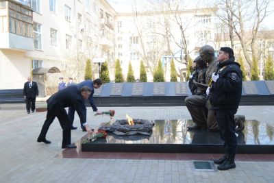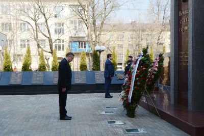 Далее полномочный представитель отправился в город-герой Смоленск, где в сопровождении Губернатора области Алексея Островского возложил цветы и венки к Мемориалу солдатам правопорядка, погибшим при исполнении служебного долга.