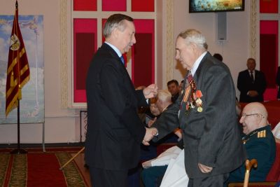 В Культурном центре Управления МВД России по Смоленской области полномочный представитель Президента Александр Беглов встретился с 16-ю ветеранами и торжественно вручил им юбилейные медали «70 лет Победы в Великой Отечественной войне 1941-1945 годов».