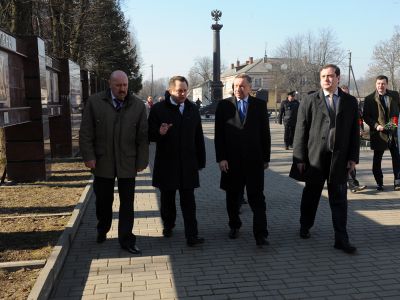 В память о павших в годы Великой Отечественной войны Александр Беглов и Алексей Островский возложили к стеле цветы.