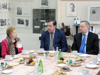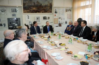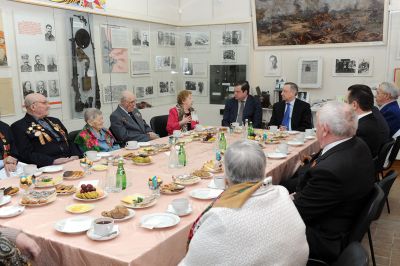 Также в Ельне делегация посетила районный историко-краеведческий музей, в котором состоялась встреча с ветеранами Великой Отечественной войны. В преддверии самого главного праздника для всей страны Александр Беглов и Алексей Островский наградили смоленских воинов-освободителей медалями «70 лет Победы в Великой Отечественной войне 1941-1945 годов», после чего пообщались с ветеранами за чашкой чая.