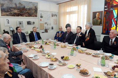 В свою очередь, Алексей Островский рассказал ветеранам о работе по подготовке к великому празднику, которая ведется на территории региона: «Мы ведем серьезную работу по подготовке к празднованию Великой Победы. Мною было дано поручение о том, чтобы в этом году все без исключения ветераны Великой Отечественной войны прошли бесплатно, за счет бюджета нашей области, полный медицинский осмотр в больницах и получили всю необходимую помощь. В этом году мы ввели дополнительные социальные льготы для ветеранов. Естественно, в праздничные дни вновь за счет бюджета будет организован бесплатный проезд ветеранов. Значительные средства по поручению главы нашего государства мы вкладываем в ремонт и приведение в порядок обелисков, монументов, воинских захоронений и мемориалов».
