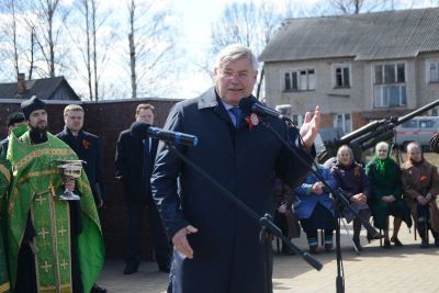 Обращаясь к гостям, Алексей Островский поблагодарил за работу, которую они проводят по увековечению памяти защитников Отечества: «Мы благодарны студентам Томского политехнического института за их внимание к этой работе. Отрадно, что и сейчас руководство института здесь с нами. Особые слова благодарности - администрации Томской области за то, что при непростой нынешней экономической ситуации, она вкладывает средства на поддержание в достойном состоянии этого мемориала». По словам Алексея Островского, со стороны администрации Смоленской области состоянию памятника также уделяется особое внимание. Даже тысячи километров, которые разделяют два региона, не являются препятствием для объединения усилий в сохранении общей истории. «У нас совершенно разные регионы, но до тех пор, пока будет жить память об этой войне, о тех, кому мы обязаны мирным небом над головой, мы всегда были и будем единой страной. Низкий поклон тем, кто подарил нам жизнь и свободу», - заявил Алексей Островский.