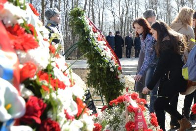 В пятую годовщину трагедии траурные мероприятия начались у памятного камня. Министр транспорта России Максим Соколов, руководство администрации области, представители смоленской молодежи возложили цветы и венки к памятному камню на мемориальной площадке близ аэродрома «Северный».