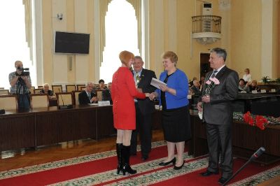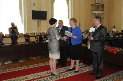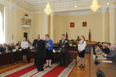 Заседание началось с торжественной церемонии награждения победителей и призеров регионального этапа Всероссийского конкурса «Российская организация высокой социальной эффективности». Накануне первомайского праздника Весны и Труда лауреатам конкурса были вручены Благодарственные письма Губернатора Смоленской области и Департамента по социальному развитию.