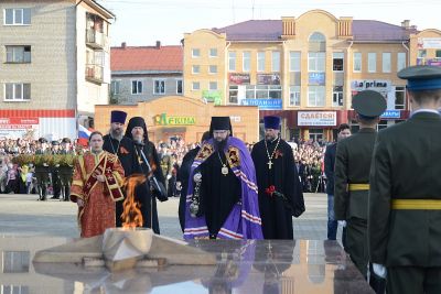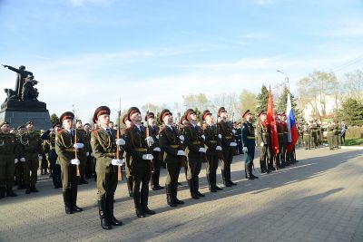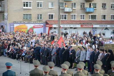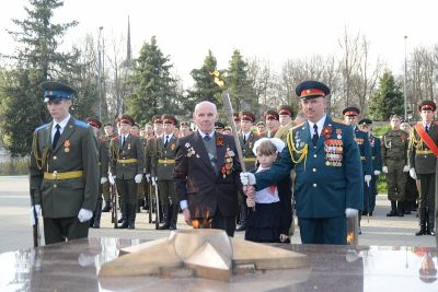 Почетное право зажечь Вечный огонь было предоставлено начальнику Вяземского гарнизона Дмитрию Примаку, Ветерану Великой Отечественной войны, Почетному гражданину Вязьмы Анатолию Перепелкину и ученице пятого класса Вяземской средней общеобразовательной школы №10 Анне Торбиной.