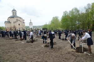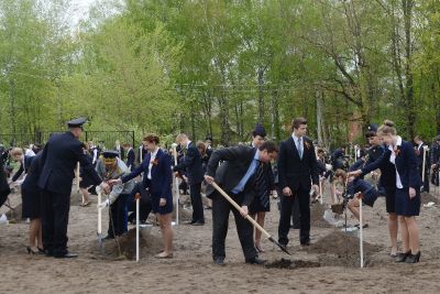 После этого Алексей Островский вместе с действующими офицерами полиции и УФСБ, ветеранами силовых ведомств и воспитанниками школы-интерната принял участие в высадке саженцев.