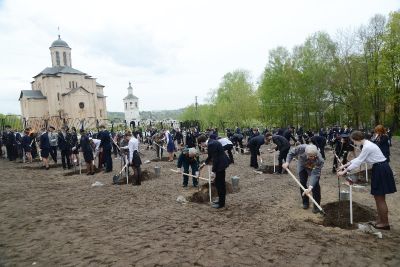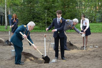 В канун 70-летия Великой Победы возле школы-интерната имени Кирилла и Мефодия в Смоленске сотрудники силовых ведомств региона – УМВД и УФСБ высадили 70 саженцев яблонь и вишен, специально выведенного сорта «Победа». В церемонии закладки будущего фруктового сада принял участие Губернатор Алексей Островский.