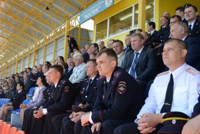 Сегодня же Алексей Островский побывал на показательных выступлениях сотрудников ОВД на стадионе физкультурно-оздоровительного комплекса «Восток».