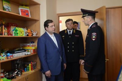 Далее Алексей Островский посетил помещение для работы сотрудников полиции по делам несовершеннолетних, в котором впервые на Смоленщине появилась комната психологической разгрузки для несовершеннолетних правонарушителей. Как пояснили главе региона, создание подобной комнаты было необходимо в связи с тем, что при доставке в подразделение детей, находящихся в социально опасном положении, а также при обращении по возникающим вопросам родителей с детьми, нужно создавать обстановку, максимально приближенную к домашней. С появлением кабинета психологической разгрузки у ребят теперь есть возможность провести время почти в домашней обстановке. Здесь же с детьми работают психологи. Кроме этого ребят обеспечивают горячим питанием: его доставка организована при поддержке администрации Гагаринского района.