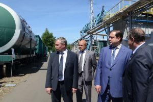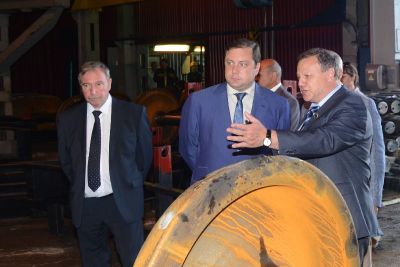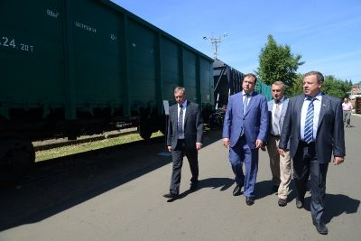 Генеральный директор ОАО «Рославльский ВРЗ» Юрий Черняк провел экскурсию для Алексея Островского по цехам предприятия, продемонстрировал солидную номенклатуру производства и рассказал главе региона о ближайших производственных планах завода: планируемом заключении перспективных контрактов на производство около 400 платформ для перевозки леса и т.д.