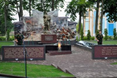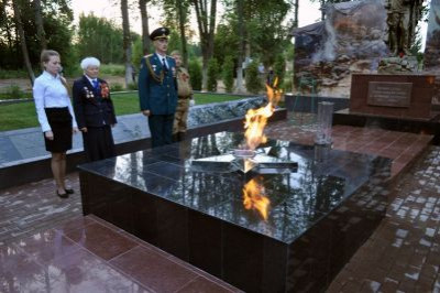 Участники и гости церемонии почтили Минутой молчания память бойцов Красной Армии и мирных жителей, погибших в годы Великой Отечественной войны, после чего возложили к мемориалу венки и цветы.