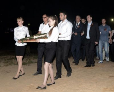 Благочинный Ярцевского округа протоиерей Василий Мовчанюк зажег Свечу Памяти от Вечного Огня. Этот огонь был пронесен поминальным шествием до места поминовения погибших на берегу реки Днепр, где состоялась традиционная для фестиваля акция «Свеча памяти».