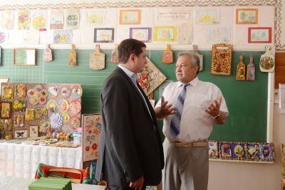 Особый интерес главы региона вызвали кабинеты дополнительного образования: «Машиноведение», «Вышивальная мастерская», «Гончарный цех», «Домоводство», «Роспись по дереву, стеклу», «Основы православной культуры», «Семейная педагогика». Благодаря их работе ученики значительно расширяют свой кругозор, выходя за пределы основной образовательной программы, а также приобретают практические навыки и умения. Например, в кабинете «Машиноведение» осуществляется подготовка трактористов категорий В и С, а также водителей легковых автомобилей. При этом уровень знаний и практики, которые получают ученики, не уступает подготовке в профильных учебных заведениях. В «Гончарном цехе» ребята со второго класса обучаются гончарному мастерству, занимаются лепкой, живописью, графикой и керамикой. Глава региона отметил грамотный и системный подход педагогического коллектива к организации всего образовательного процесса. «Именно такие люди должны работать в системе образования. Вы настолько живете профессией, с такой любовью относитесь к ученикам и предметам, которые преподаете, что это не может не заслуживать уважения. Такой подход к делу - залог успеха всех детей, которые получают здесь знания, - сказал Алексей Островский.