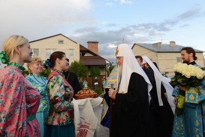По окончании молебна Предстоятель Русской Православной Церкви передал в дар Борисоглебскому храму икону Божией Матери «Всех скорбящих Радость».