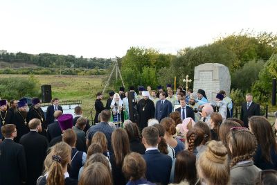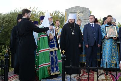 В первый день своего визита в Смоленскую область, Святейший Патриарх Московский и всея Руси Кирилл посетил Смядынь, где, по преданию, был убит князь Глеб – сын святого равноапостольного князя Владимира. У установленного здесь памятного знака Предстоятель Русской Православной Церкви совершил молебен святым страстотерпцам Борису и Глебу.