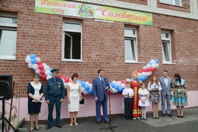 Следующим пунктом рабочей поездки стало торжественное открытие детского сада «Соловушка» в Соловьиной роще - динамично развивающемся микрорайоне города. Дошкольное образовательное учреждение было введено в эксплуатацию в августе этого года, стоимость проекта составила 84,6 млн. рублей: в том числе, более 83 млн. – средства федерального бюджета, около миллиона рублей направлено из областного бюджета. Дополнительные расходы, более 7 миллионов рублей, финансировались за счет городского бюджета. При проектной мощности 150 мест здесь в 8 группах будут заниматься 210 ребят в возрасте от 1,5 до 7 лет.