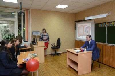 После торжественной линейки глава региона принял участие в открытом уроке, в ходе которого пообщался с будущими выпускниками.