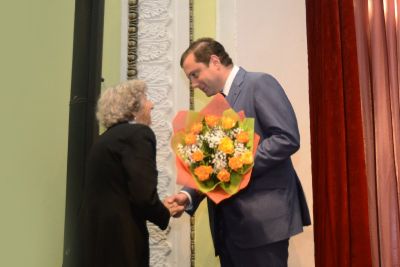 После выступления глава региона вручил нагрудный знак «Почетный гражданин Смоленской области – защитник Отечества» жительнице города Сафоново, ветерану Великой Отечественной войны Тамаре Анисимовне Сварич.
