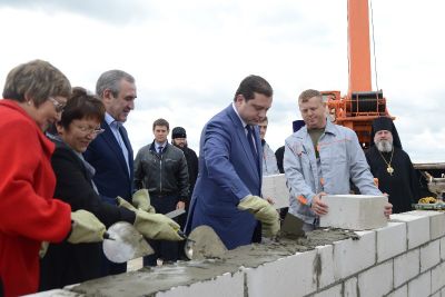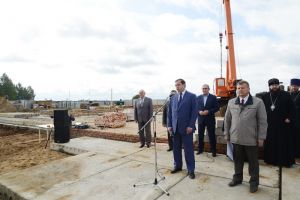 В свою очередь Алексей Островский также отметил важность появления в муниципальном образовании новых социальных учреждений: «Новодугинский район в последние годы по многим показателям выходит на лидирующие позиции, прежде всего по реализации мероприятий, направленных на создание новой социальной инфраструктуры. Это и ремонт социальных учреждений, и строительство новых объектов. Совсем недавно вместе с Сергеем Ивановичем Неверовым, с Владыкой Исидором мы открывали дом для пожилых людей в Мольгино. Те, кто там живут, получают качественные медицинские услуги, квалифицированный уход и помощь, приобрели там друзей и подруг. Аналогичные учреждения будут построены в ближайшем будущем в Днепровском и Болшево. Сегодня мы заложим камни в основание этих новых социальных объектов».