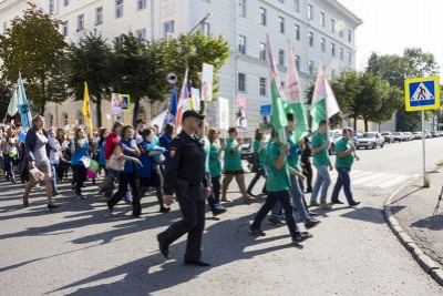 Колонна активистов прошествовала от Смоленского государственного университета до Массового поля Центрального парка культуры и отдыха «Лопатинский сад», где развернулась концертная площадка.