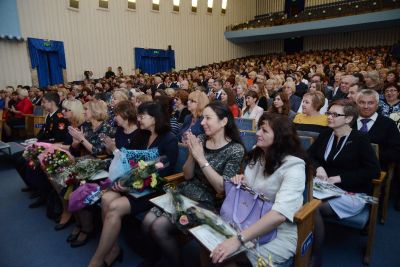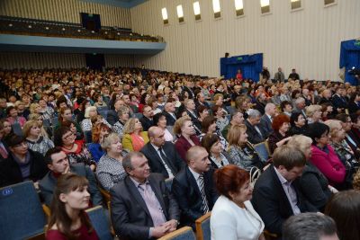 В преддверии Международного дня учителя в культурно-досуговом центре «Губернский» состоялось торжественное собрание, приуроченное к этому по-настоящему всенародному празднику. В зале собрались руководители и педагогические работники дошкольного, общеобразовательного, высшего профессионального образования, ветераны педагогического труда со всей Смоленщины. Работников сферы образования региона тепло приветствовал Губернатор Алексей Островский.