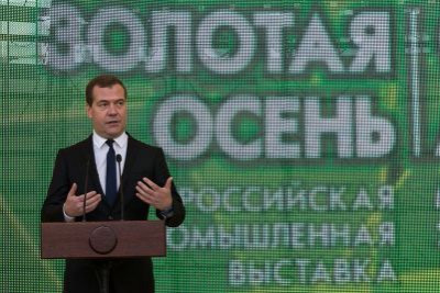 «Золотая осень» – одна из наиболее интересных площадок, где обсуждаются перспективы аграрного сектора. В рамках экспозиции представлены практически все подотрасли сельского хозяйства, смежных с сельским хозяйством производств или так называемого ретейла. Значит, каждый из профессионалов, которые здесь представлены, может найти для себя новые идеи, продукцию, технологии или деловых партнёров, не говоря уже о том, что выставка вызывает обоснованный интерес огромного количества наших обычных людей, которые с удовольствием здесь бывают, гуляют, смотрят, что происходит», - обратился к участникам Председатель Правительства Дмитрий Медведев на церемонии открытия выставки. Также он подчеркнул, что цели аграрной политики в России остаются неизменными: конкурентоспособное, современное сельское хозяйство, высокотехнологичный пищепром, качественные и доступные по цене продукты для граждан страны. «Год назад мы в качестве приоритета выбрали курс на импортозамещение. Это всецело касается и сельского хозяйства, - отметил Председатель Правительства. - Это решение, которое было в значительной мере продиктовано политическими соображениями, оказалось весьма выгодно нашему агропромышленному комплексу и целому ряду предприятий, компаний из разных стран, которые с нами сотрудничают, работают именно в Российской Федерации. Объёмы поставок в этом смысле растут, и, надеюсь, это будет продолжено».
