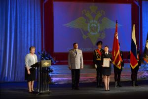 Вице-губернатор Ольга Окунева и начальник УМВД России по Смоленской области Михаил Скоков торжественно вручили особо отличившимся стражам правопорядка Благодарственные письма Губернатора и Почетные грамоты Администрации Смоленской области, ведомственные награды за добросовестное исполнение служебных обязанностей и высокое профессиональное мастерство, достижение высоких результатов в служебной деятельности .