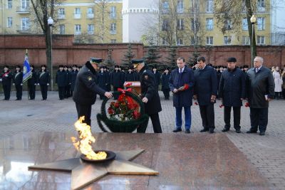 Присутствующие возложили цветы к Вечному Огню и почтили память павших Минутой молчания.