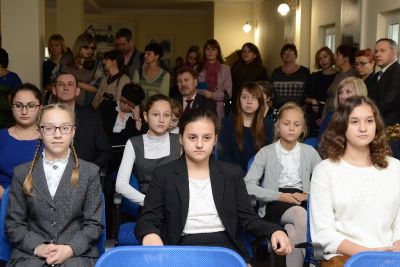 В рамках открытия концертно-выставочного зала Ольга Окунева и Игорь Абушевич торжественно вручили свидетельства на получение стипендии Администрации области «Юные таланты Смоленщины» десяти учащимся детских музыкальных, художественных школ и школ искусств региона, а также свидетельства на получение премии Администрации области трем победителям областного конкурса «Лучшая школа дополнительного образования» за 2014 – 2015 годы.