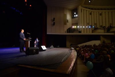 В Смоленском государственном драматическом театре имени А.С. Грибоедова состоялось торжественное мероприятие, посвященное 80-летию со дня образования МБУ ДО «Дворец творчества детей и молодежи» - старейшего многопрофильного учреждения дополнительного образования региона. Воспитанников и педагогический коллектив поздравил Губернатор Алексей Островский.