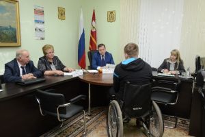 На прием к Алексею Островскому пришли Юрий Алексеевич Булычев с матерью Натальей Ивановной, проживающие в городе Сафонове. Заявитель является инвалидом I группы (травма позвоночника), проживает вместе с родителями в квартире на 3-м этаже. В этом году он обращался к главе Сафоновского района по вопросу установки пандуса в многоквартирном доме по месту проживания его родителей. В результате проработки данного вопроса технического решения найти не удалось. Заявителю предлагалось использовать мобильный инвалидный подъемник (ступенькоход), но от данного предложения Юрий отказался. Губернатор поинтересовался причиной отказа. Юрий пояснил, что инвалидный подъемник не дает возможности самостоятельного передвижения: «Я продолжаю вести активный образ жизни, и мне такой вариант не подходит. До травмы занимался спортом, и сейчас, уже после получения травмы, я закончил институт, получил высшее образование».