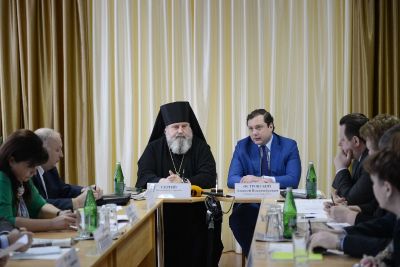 В совещании приняли участие заместитель Губернатора Ольга Окунева, начальники региональных Департаментов, курирующих социальную сферу, руководители муниципалитетов, епископ Вяземский и Гагаринский Сергий.