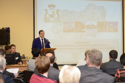 В Смоленске состоялось заседание Коллегии областного Департамента по образованию, науке и делам молодежи, в ходе которого были подведены итоги работы отрасли в 2015 году и определены задачи ее развития на текущий год. Участие в совещании принял Губернатор Алексей Островский. Мероприятие прошло в Смоленском институте развития образования.