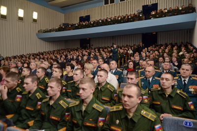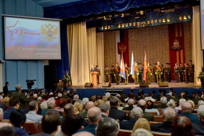 В этот же день в Культурно-досуговом центре «Губернский» состоялось торжественное собрание, посвященное Дню защитника Отечества, в котором приняли участие ветераны Великой Отечественной войны и Вооруженных Сил, труженики тыла, командование и воины Смоленского гарнизона, командиры воинских частей, курсанты и слушатели Военной Академии, военнослужащие и члены их семей.