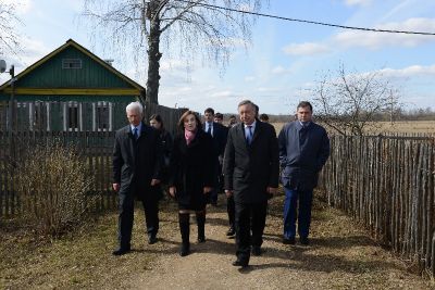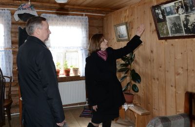 Далее Александр Беглов побывал в Доме-музее детства Ю.А. Гагарина в селе Клушино. Здесь воспроизведена обстановка довоенного времени, которая окружала маленького Юру в раннем детстве. Рядом с домом можно увидеть землянку, в которой во время фашистской оккупации жила семья Гагариных. Рядом с избой расположен знаменитый «Гагаринский» колодец.