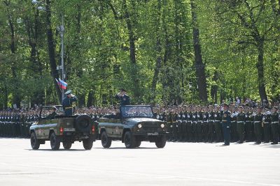 Командовал парадом заместитель начальника Военной академии противовоздушной обороны Вооруженных Сил России имени маршала Советского Союза А.М. Василевского, кавалер Ордена «За военные заслуги» и медали Ордена «За заслуги перед Отечеством», полковник Борис Новиков.