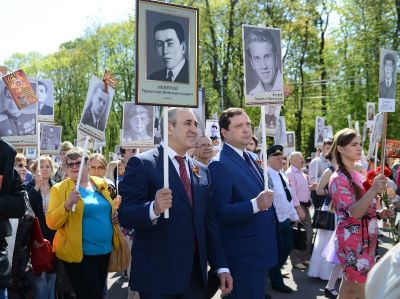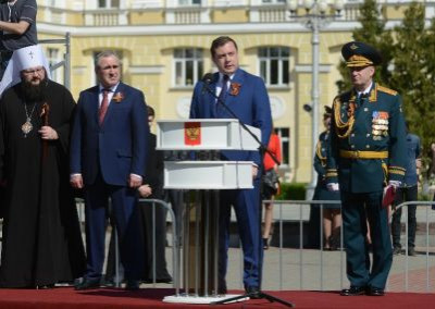 Глава региона отметил, что пример мужества, самопожертвования, которые демонстрировали наши соотечественники, никогда не будут забыты: «Это мерило нравственности и патриотизма для детей, внуков и правнуков солдат и офицеров Победы. Сегодня они присутствуют здесь и с гордостью пройдут по нашей площади с портретами своих героев. Пройдут в колонне «Бессмертного полка» в знак глубочайшего уважения к тем, кто подарил нам этот Великий день, кто навеки остался на полях сражений, кто уже никогда не сможет встретить с нами этот священный праздник».