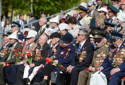 Организаторы парада подготовили для ветеранов Великой Отечественной войны, которые не смогли встать в строй рядом со своими товарищами, специальные зрительские места, с которых они могли наблюдать за всем происходящим.