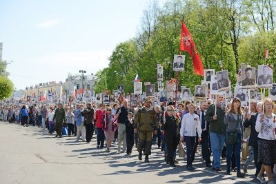 Эмоциональной частью торжественного парада, вызывающей самый живой отклик, стало прохождение по площади Ленина участников патриотической акции «Бессмертный полк».