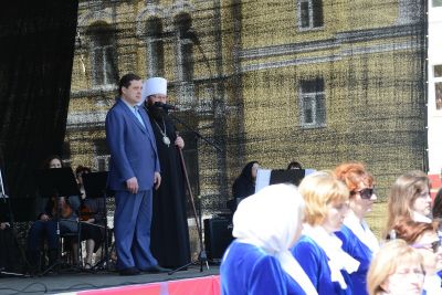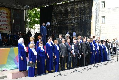 Далее праздник продолжился на центральной площади областного центра, где состоялся театрализованный концерт, посвященный Дню славянской письменности и культуры, а также завершению первого года обучения русскому языку - «Дню букваря».