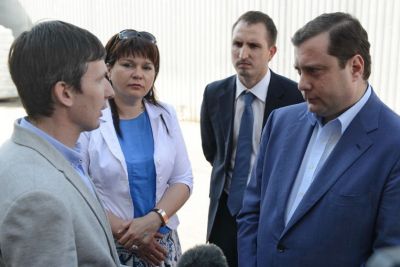 Далее глава региона ознакомился с работой логистического комплекса Transkom. Необходимые пояснения давали собственники компании Владимир Букатин и Павел Барановский.
