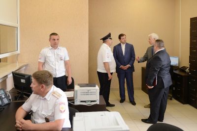Губернатор Алексей Островский посетил с рабочим визитом Гагаринский район, где ознакомился с работой отделения № 3 Межрайонного отдела по экзаменационной работе, техническому надзору и регистрации автомототранспортных средств ГИБДД УМВД России по Смоленской области, которое начало свою работу в новом здании ровно неделю назад. Необходимые пояснения главе региона давали исполняющий обязанности начальника регионального УМВД Олег Шкаликов и начальник областного УГИБДД УМВД Иван Онищенко.