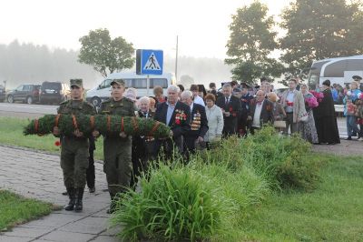Ровно в 4 часа утра в небо запустили сигнальные ракетницы. Затем епископ Вяземский и Гагаринский Сергий отслужил заупокойную литию по убитым на полях сражений, замученным в оккупации и концлагерях. Далее участники под звуки метронома почтили память погибших Минутой молчания, зажгли свечи и возложили цветы на могилы героев.