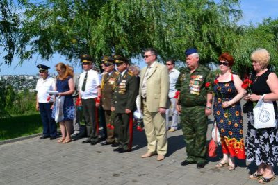 Открытие памятного знака состоялось под звуки военного оркестра в присутствии членов Администраций Смоленской и Волгоградской областей, представителей ветеранских организаций.
