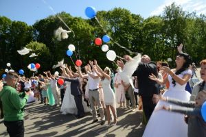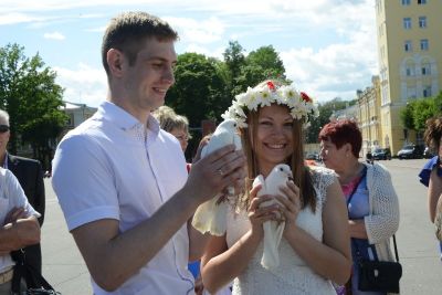 Этот добрый и искренний праздник завершился торжественным запуском в небо голубей, символизирующих чистоту и святость любви, верность и семейное счастье. В июльское небо взмыли белоснежные птицы, а молодые и красивые смоляне, объединившие в этот день свои судьбы в одну, загадывали самые сокровенные желания.
