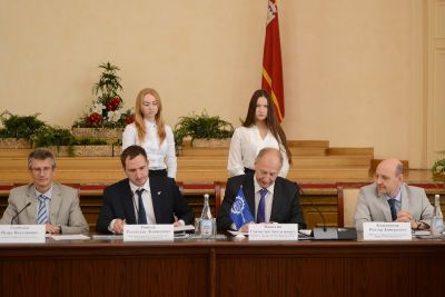 Далее состоялась церемония подписания стратегического Соглашения о сотрудничестве и взаимодействии между Смоленским региональным отделением ООО «СоюзМаш России» и Департаментом инвестиционного развития.